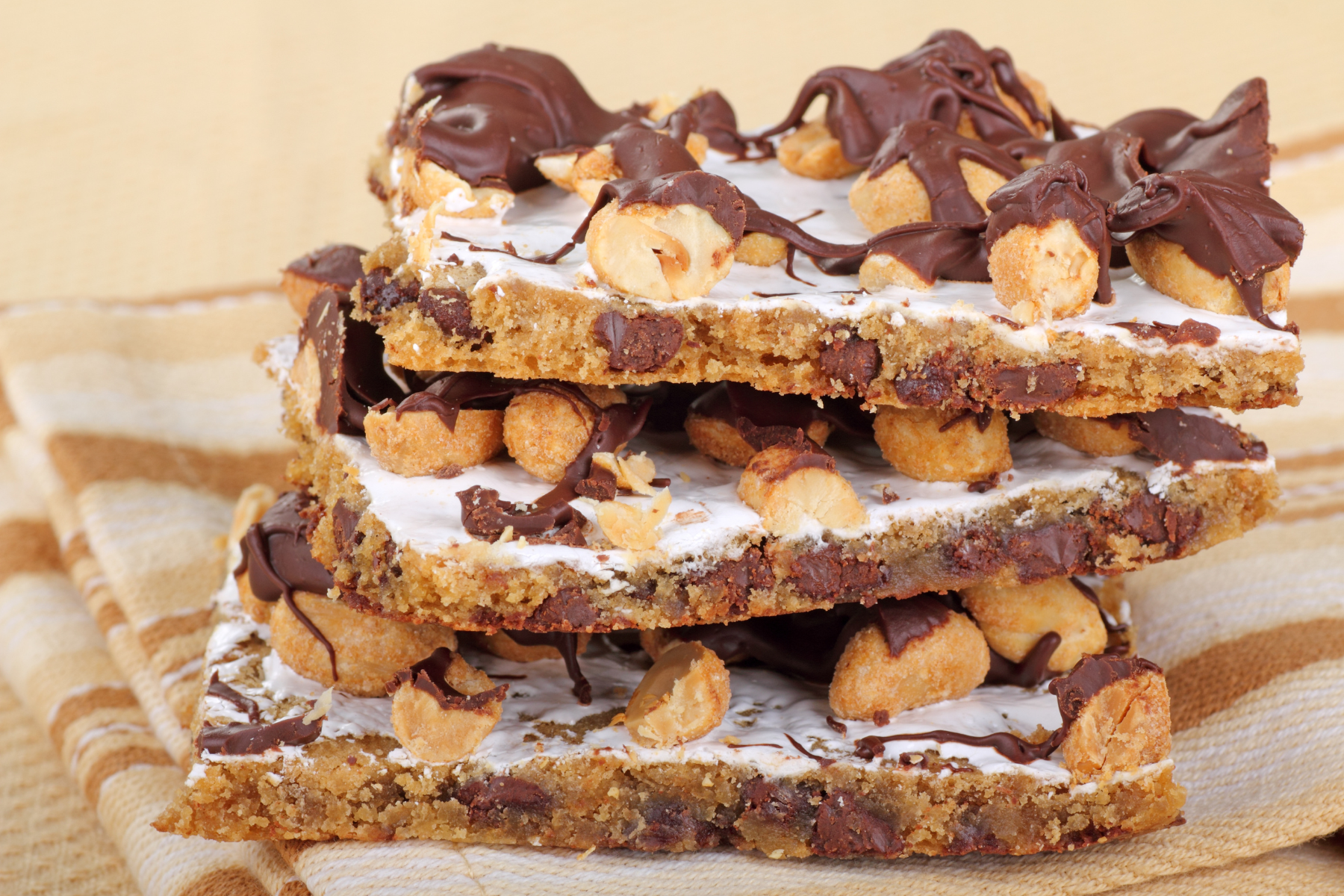 05. Top the peanut mixture with chopped peanuts and the remaining chocolate chips.